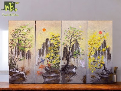 Tranh sơn dầu “Vàng Son Tứ Quý”