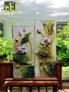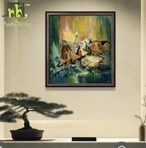 Tranh Sơn Dầu “Bộ Đôi Sen Cổ”