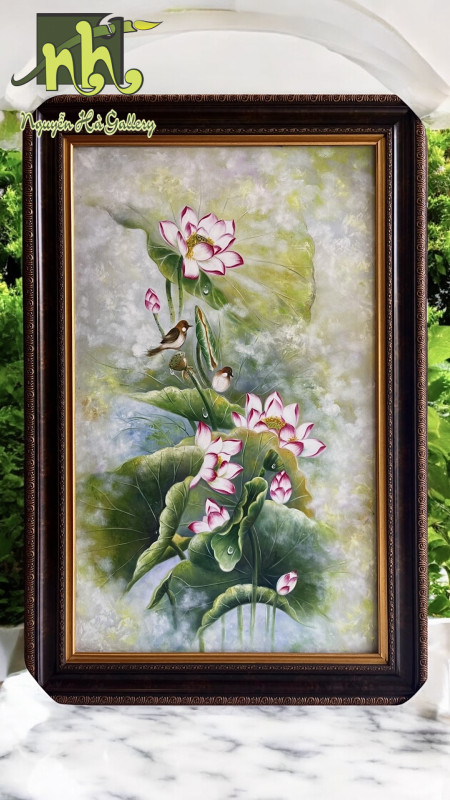 Tranh Sơn Dầu “Bộ Đôi Sen Cổ”