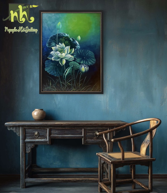 Tranh Sơn Dầu “Bộ Đôi Sen Cổ”